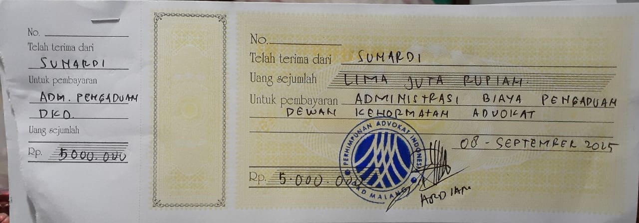 Siapkan biaya 5 juta kalau melaporkan Advokat nakal.